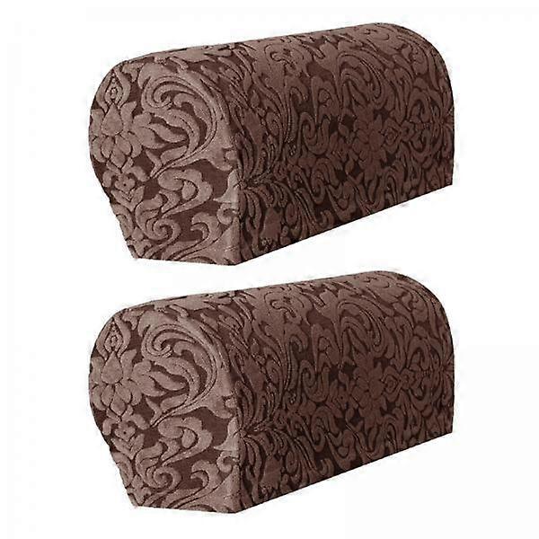 2xHigh Stretch Sofa Armrest Cover Jacquard Sofa Armchair Slipcovers Dark Brown