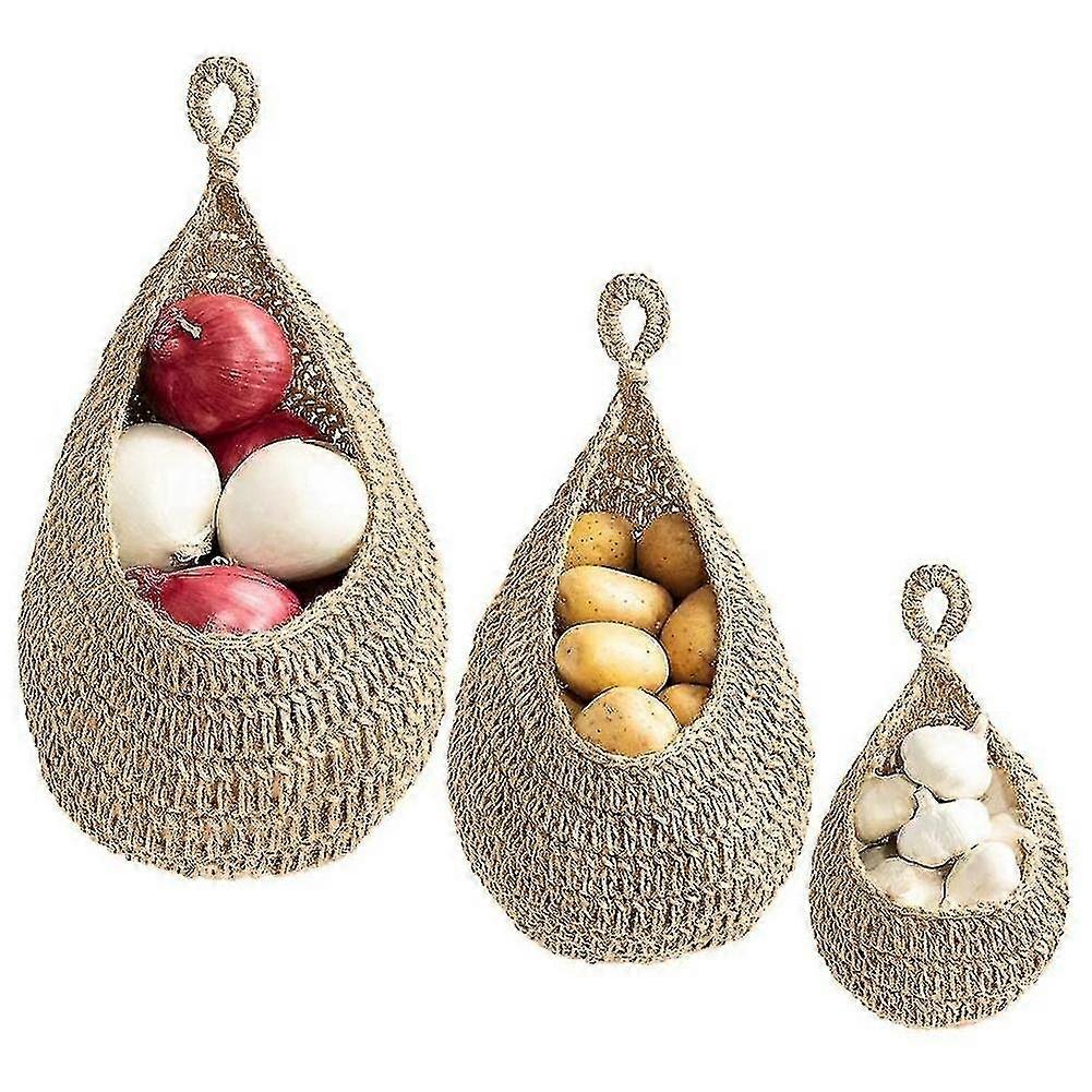 3 Boho Hanging Baskets Compatible With Fresh Produce Storage, Vegetable Keepers