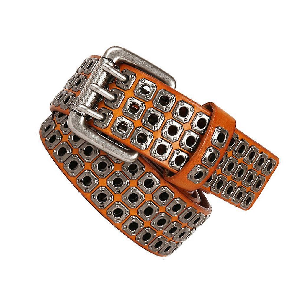 3 Row Stylish Studded Belts Hollow Belt Casual Male Strap Cowhide Leather Fashion Waist Band with Unique Buckle