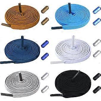 [3 Pairs] Flat Elastic Shoelaces with Metal Cap, Quick Lacing System Shoelace Set Loopless