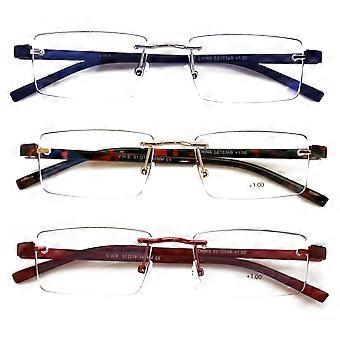 3 Pairs Lightweight Full Rimless Reading Glasses Metal with Flexible Temple - Rectangular Anti Blue Blocker Reader Clear Lens 2.00