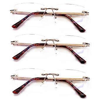 3 Pairs Men Full Rimless Reading Glasses Metal Frame- Rectangular Anti Blue Blocker UV Protection Reader with Daimond Cut Clear Lens 1.50