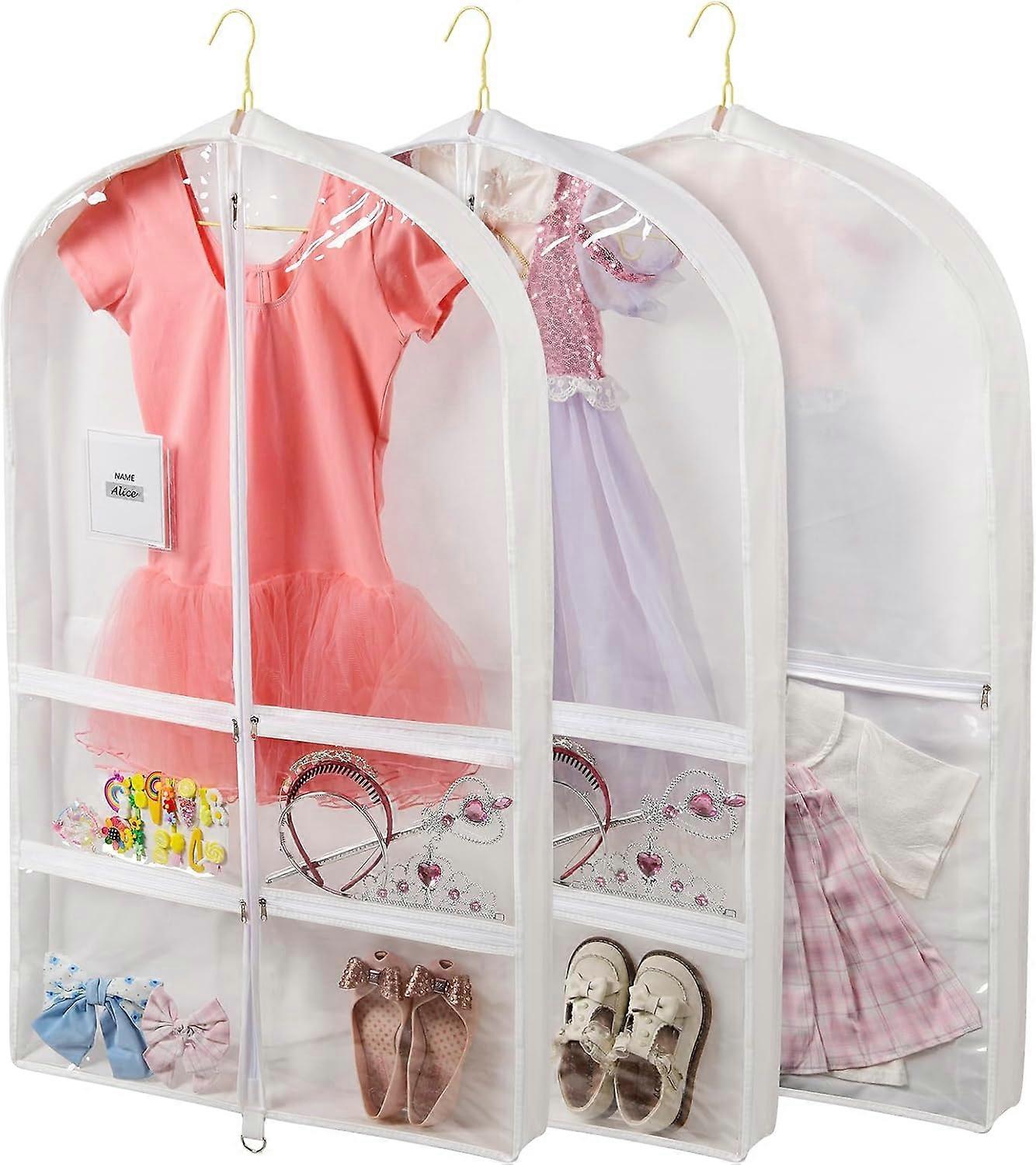 3 pcs 40\" Kids Dance Costume Garment Bag with 4 Medium Clear Zipper Pockets and 1 Large Back Zipper Pocket