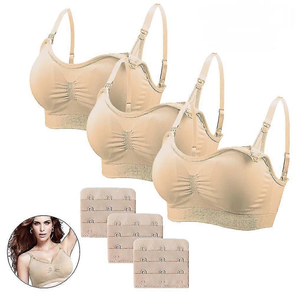 3 Pcs Nylon Seamless Maternity Nursing Bra With Pads, Extenders
