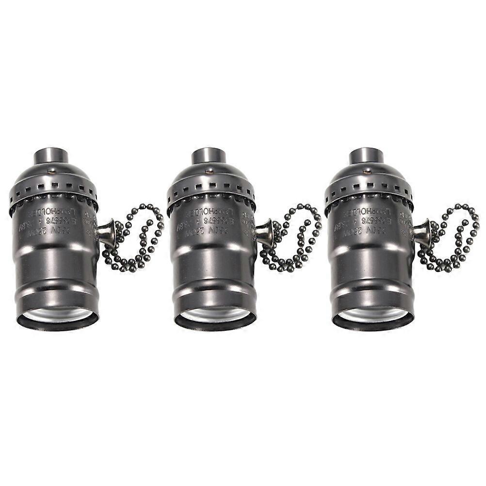 3 Pcs Retro E26 Lamp Bases Bronze Lamp Holder Accessories Light Holder Light Socket Switch With Pull Chain - Pearl (Black )