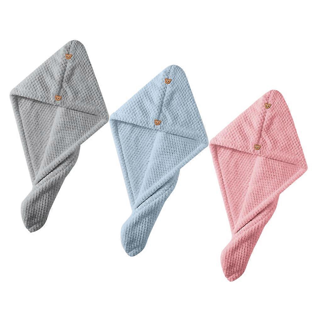 3pcs Super Absorbent Microfiber Hair Drying Towels Quick Dry Fleece Head Wraps for Women Turban Style Grey