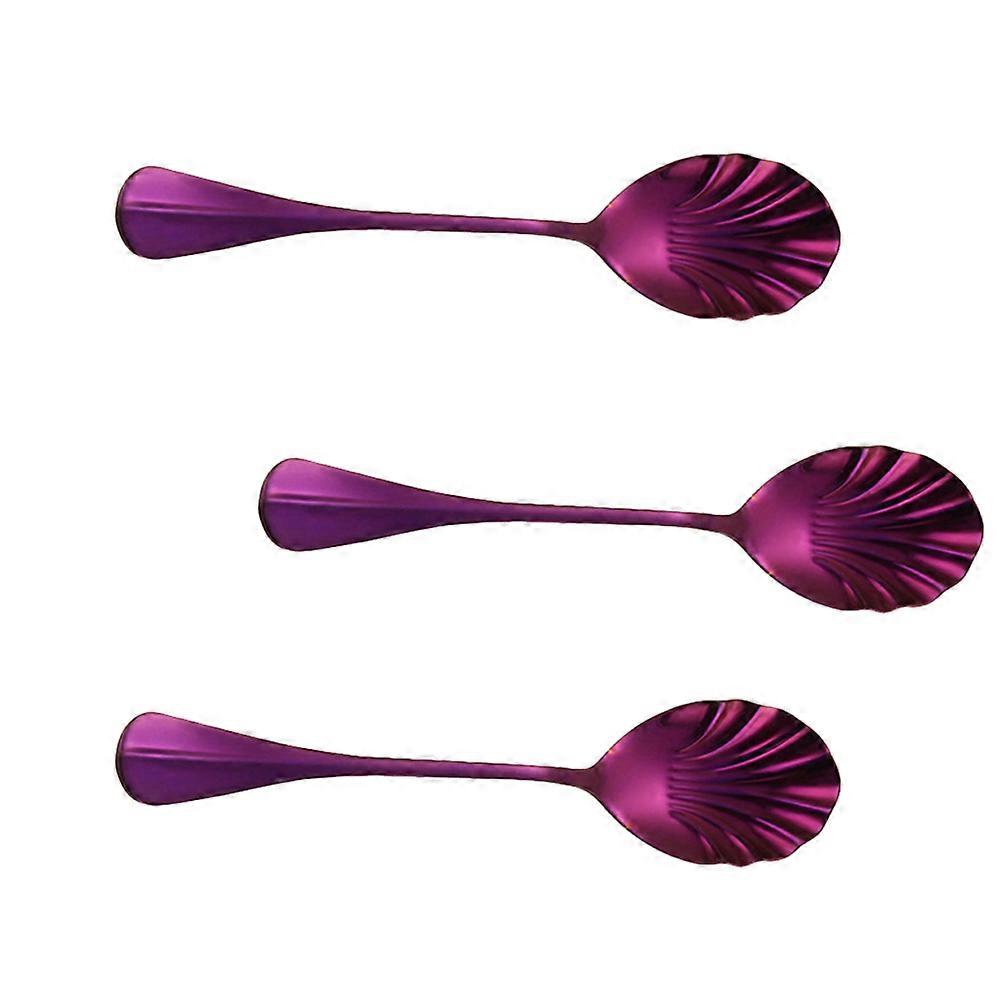 3Pcs Shell Spoon Stainless Steel for Mixing Purple Coffee Spoons