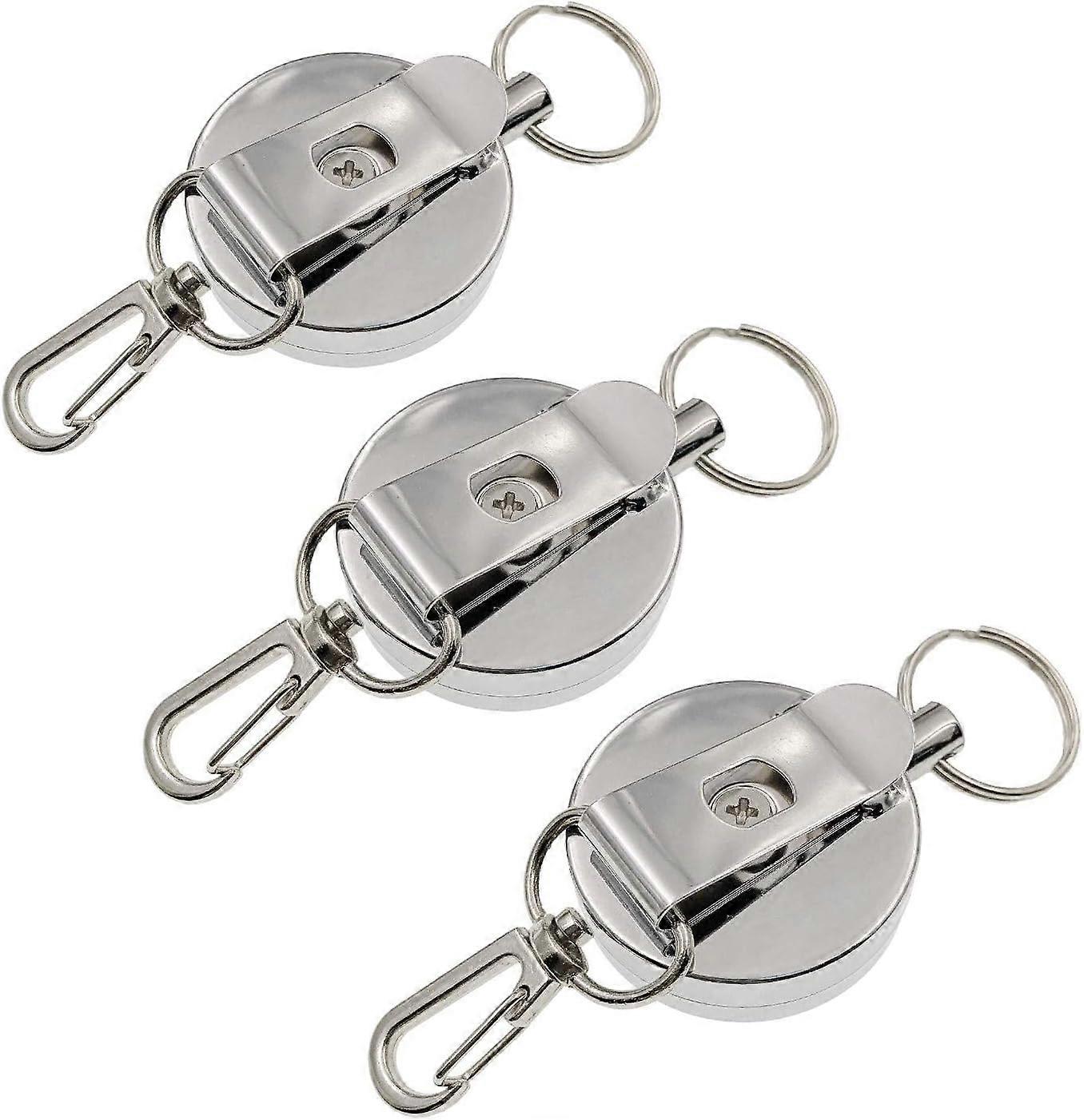 3 x Retractable Key Chains with Belt Clip and Steel Reel Chain, Retractable Badge Holder Clip, Key Holder Clip Holder