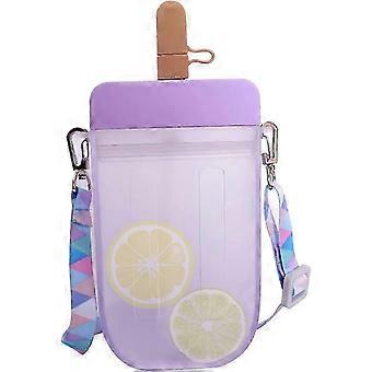 300ML Popsicle Shaped Plastic Children Drinking Bottle with Straw (Blue)