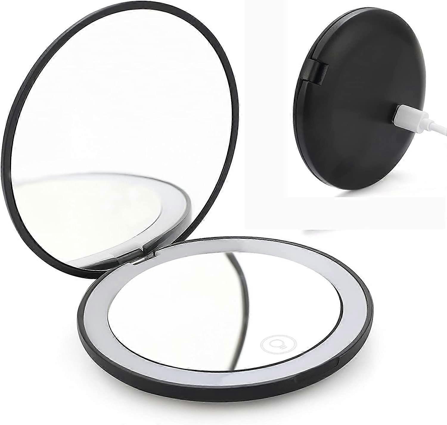 2x Magnifying Compcact Mirror: The 2X magnification travel mirror can help you to definite your skin detail and timely modification. USB Rechargeable Travel Mirror: Led Travel Makeup mirror with USB Rechargeable, long lasting,only takes 1-2 hours to fully charge. Small Makeup Mirror: Compact mirror with LED light is 3.5" diameter and only 0.7" thick, easy storage and carry on. It is light weight and very compact, mirror folding double mirror perfect for slipping into your handbag, purse or travel. Natural LED mirror: Magnifying mirror with LED light is very convenient to makeup at night and Touch to turn on/off lights and adjust brightness. Prefect gift: It is excellent makeup gift as very lovely and useful mirror for women of all ages; perfect for any special days. Colour Name: Black Lighted Mirror With Magnification The 1X mirror equipped with daylight LEDsIt can show your face more clearly, and even in dim environment, you can better and better finish your makeup with the help of LED lights. 2X magnification is great for close up detail work such as applying eye makeup. Compact Design The Magnifying Compact Mirror is 90MM diameter and 18MM thick and small. It is also easy to open and close. USB Rechargeable Led Makeup Mirror is rechargeable, is more convenient, safer and faster, no need to replace the battery more economy durable.