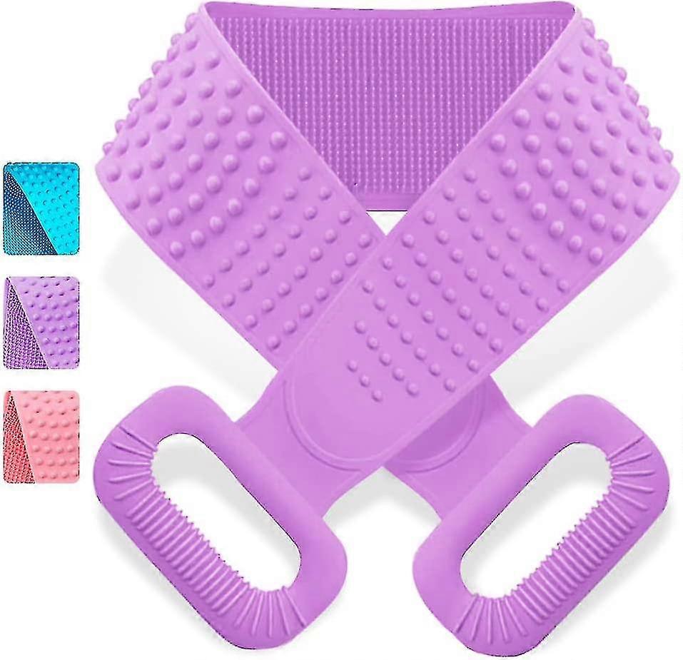 Description 3rd Generation Silicone Body Brush: With 35.5 inches/90cm long, 4.5 inches/11cm width, our upgraded super extra long silicone body scrubber is designed to replace traditional washing towel and loofah,which can make bathing more effortless and more suitable for people with larger body. .Dual Sides Design With Different Scrubbing Function:Silicone bristles on one side for quick foaming and cleaning, soft and comfortable massage bumps on the back side for exfoliating.Perfect to relax muscles, relieve stress, promote blood circulation as well as increasing the elasticity of your skin.Suitable for adult, children and elderly,which should be defined as a multiple brush for your full body use. .Food-grade Material:Made of high-quality silicone material, nicely made,more durable and sturdy, strong and not easy to break,can gently exfoliate and massage your skin.When you use it, you will find more advantages comparing with other similar products. .Non-slip Handle DesignGrabs the handle,you can move it across the back in both directions easily and effectively, without leaving a feeling of uncleanness.With a hook in the package, you can choose to hang it or place it in the bathroom to make your life more tidy and beautiful.