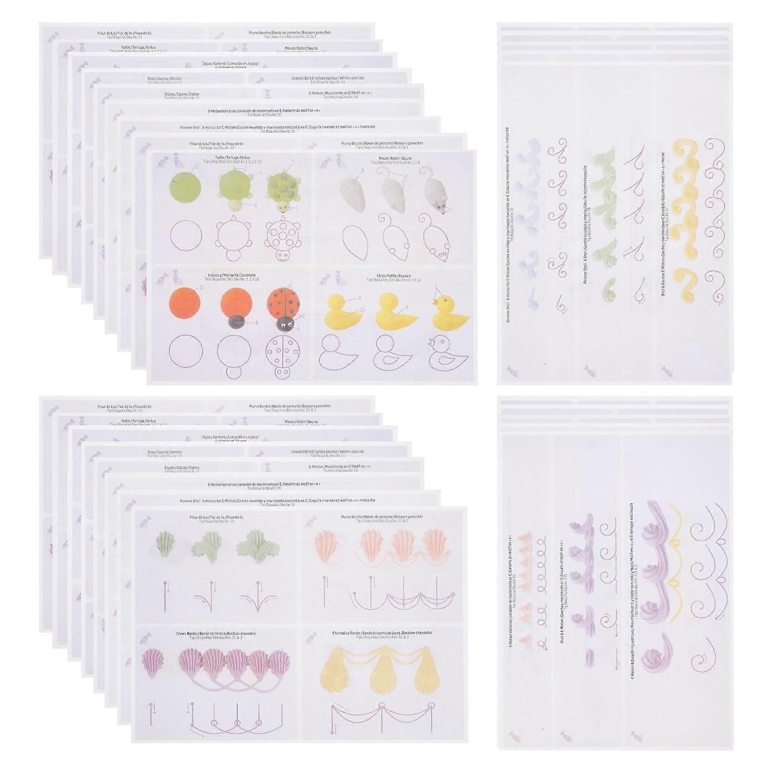 36 Sheets Of Cake Decorating Piping Drawings In Assorted Color Suitable For Bakers And Pastry Decoration Activities With Rectangular Shape