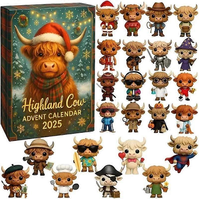 3D Highland Cow Advent Calendar 2025,24-Day Christmas Advent Countdown Calendar B