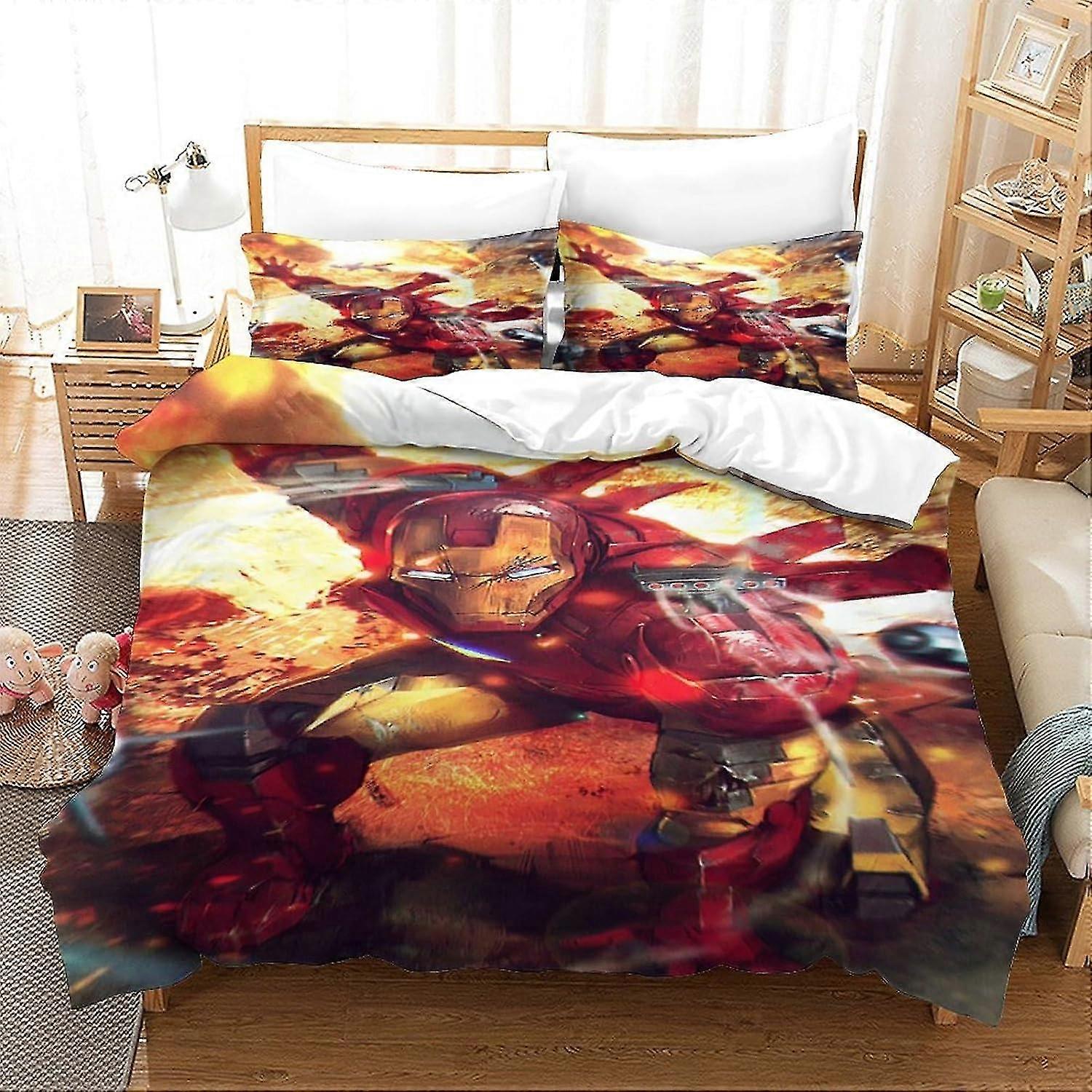 3D Iron Man Effect Quilt Bedding Set,Superhero Printed Duvet Cover Set Soft Microfiber with Pillwocase 3 Pcs for Childrens And Adults Double