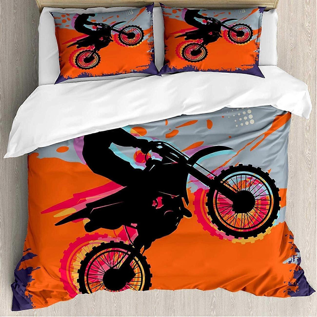 3D Motorcycle Dirt Bike Bedding Quilt Cover Duvet Cover Set with Pillow Case(Twin)