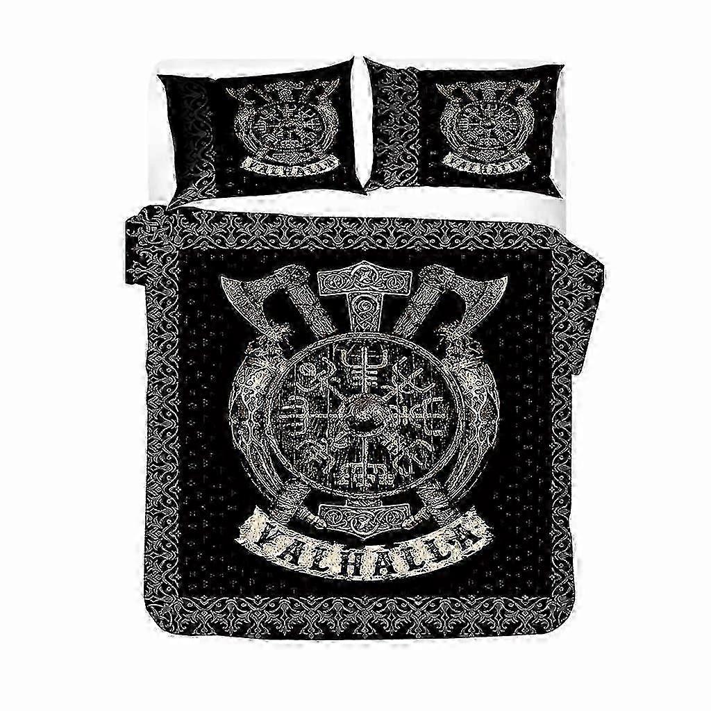 3D Print Thor's Hammer Bedding Set, Norse Viking Mjolnir Shield Axes and Valhalla Rune Quilt Covers Pillowcase Queen Comforter,Black,228 X 228 cm