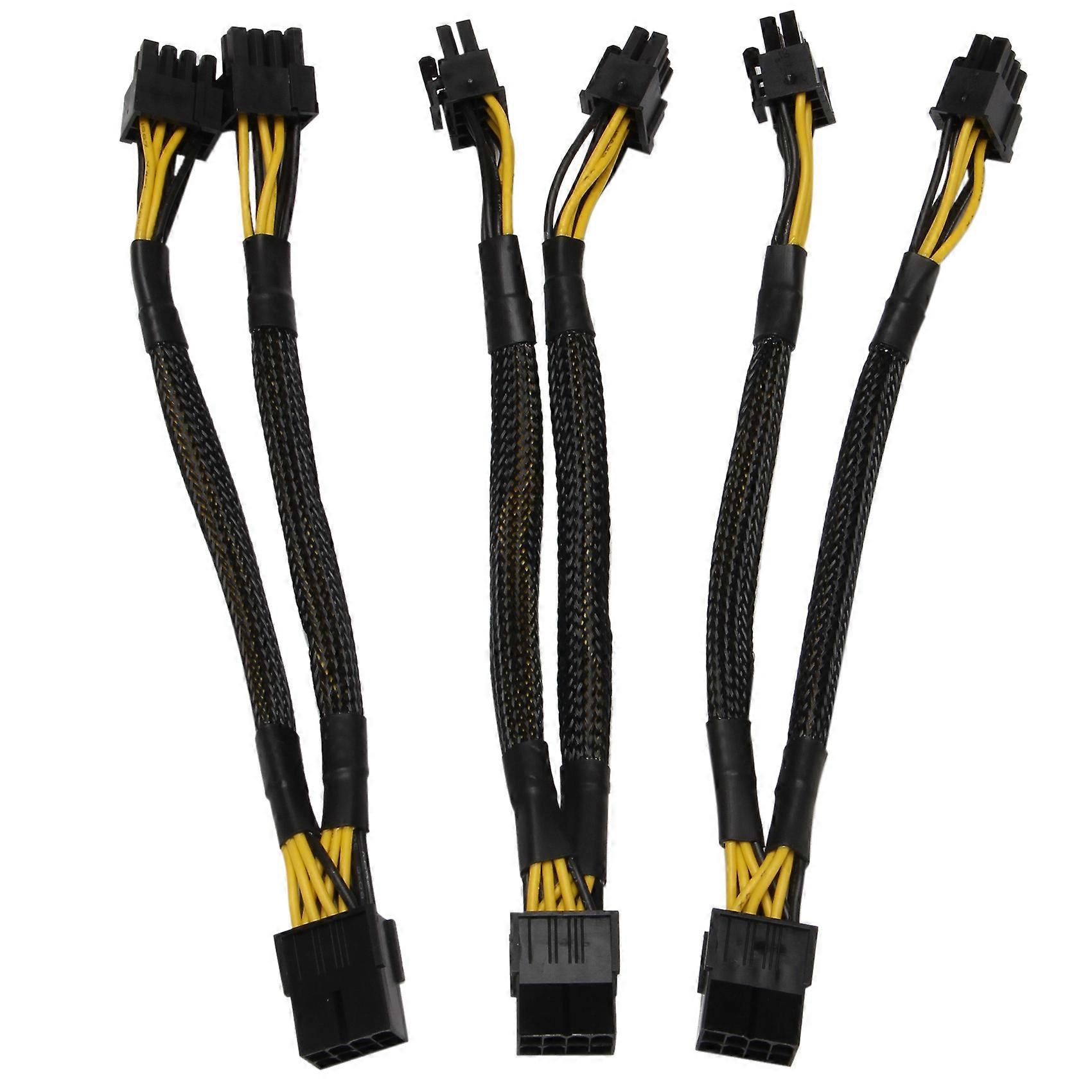 8 PIN to 2 X 8 (6+2) PIN: One end is PCIe 8 Pin female port, the other end is PCIe 2 X 8(6+2) Pin male port. PCI EXPRESS POWER CABLE: 8 Pin female port connecting to PSU, the other 2 X 8(6+2) Pin male port connecting to GPUs. 8 PIN to 6 PIN ADAPTER: Connected 8 Pin power supply to 8 Pin & 6 Pin graphics card. PROVIDE EXTRA POWER REQUIREMENT: Provide convenient solution for supplying video graphics card power with an 8 pin & 6 pin connector for GPU cards that require more power. WIDELY COMPATIBLE: Compatible with 6 Pin & 8 Pin graphics cards from popular manufacturers. Colour:Black+yellow Material:PVC+18AWG tinned copper wire Size:20cm Package Contents: 3 * PCIe 8 Pin Female to Dual 8 Pin (6+2) Male PCIE Power Cable Only the above package content, other products are not included. Note: Light reflection and different displays may cause the color of the item in the picture a little different from the real thing. The measurement allowed error is +/- 1-3cm.