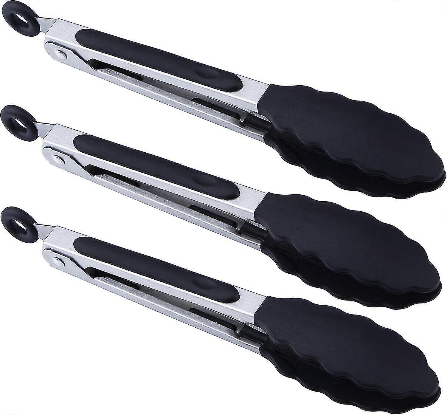 3PCS 12 Inch Mini Silicone Serving Tongs - Black