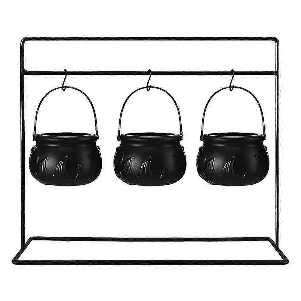 3pcs Trick Or Treat Candy Bucket With Handle Holder Plastic Witch Cauldron Witches Decorative Pot For Partys