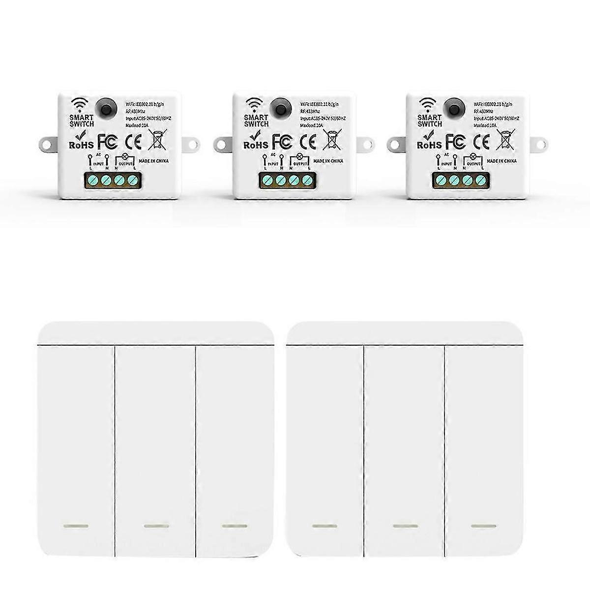 3PCS Wireless Light Wall Switch RF 433Mhz Relay Receiver with 2x 3Gang Panel Switch LED Remote Cont