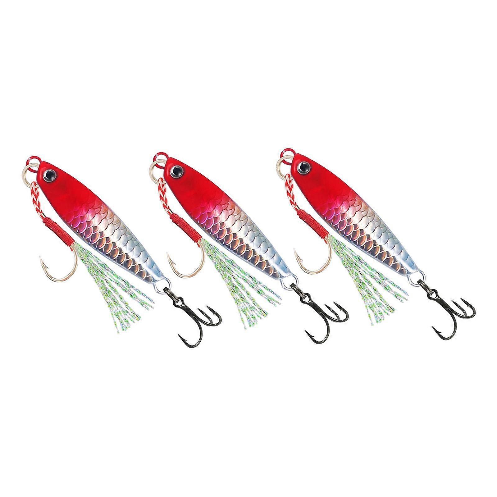 3Pcs Jigbaits Saltwater with Assist Hook and Hook Sinking Lure Fishing Lures Red