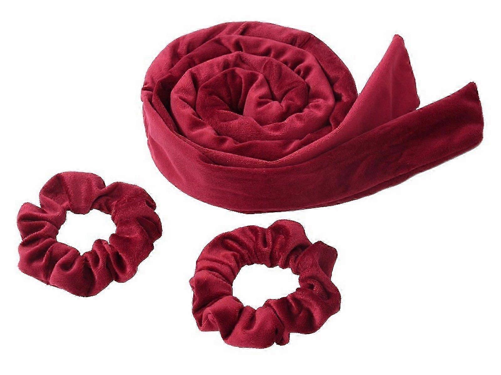 3Pcs Set Heatless Curling Rod Hair Curling Rollers Lazy Curler Headband Wine Red