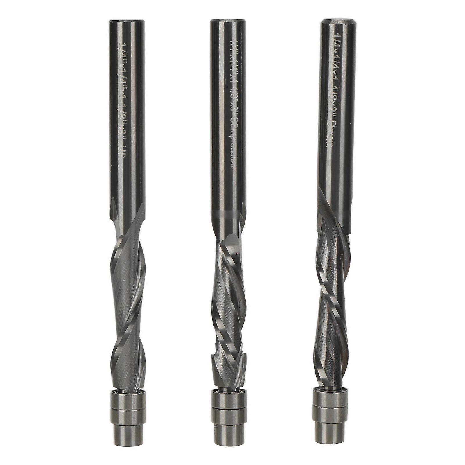 3Pcs Spiral Flushing Milling Cutter Head Set 1/4 Inch Flush Trimming Solid Tungsten Steel Trimming Cutter