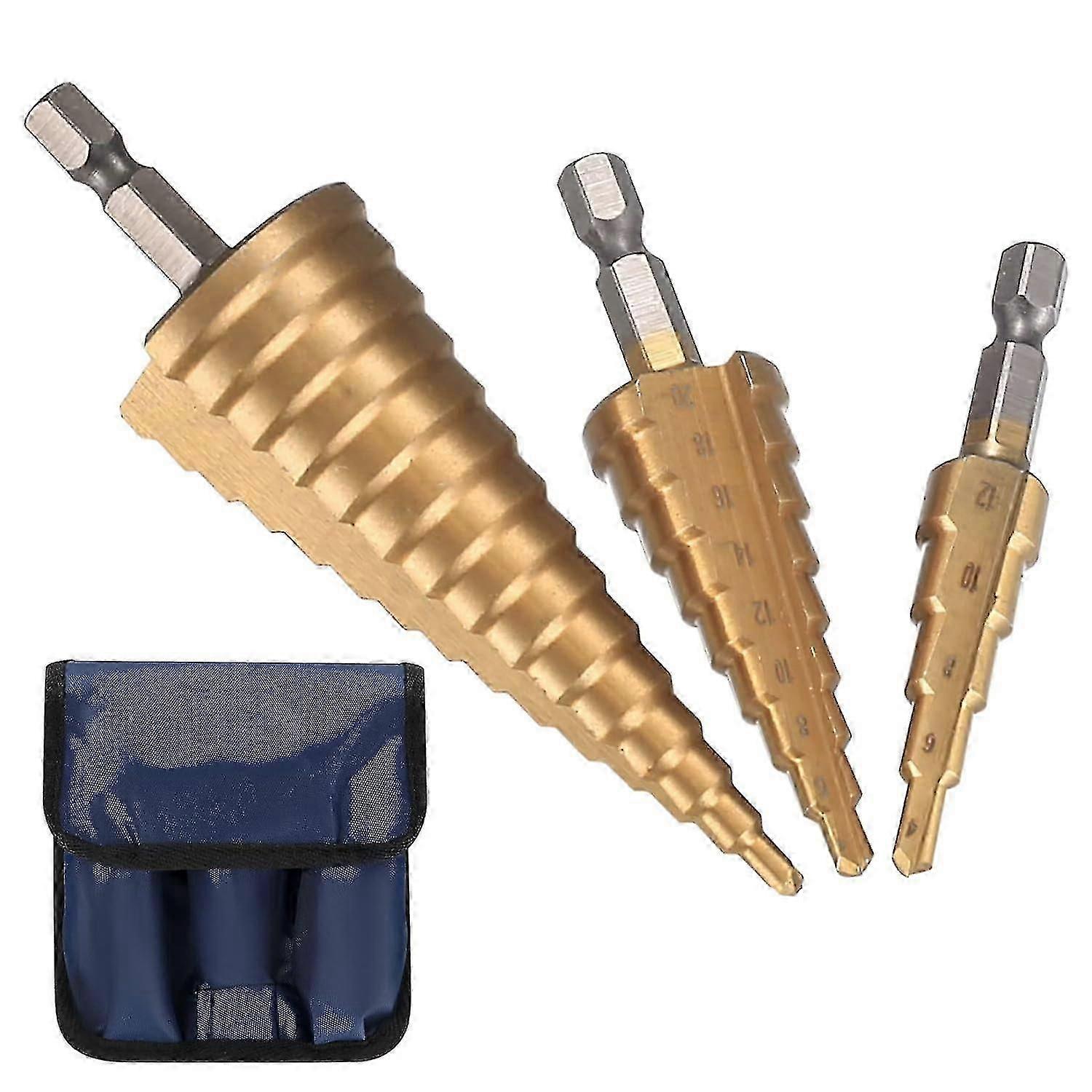 3pcs Step Drill Bit, Hss Step Drill Bit With Automatic Center Punch, Triangle Taper Step Drill Bit For Metal, Steel, Wood - 4mm-12/20/32mm-QJWL