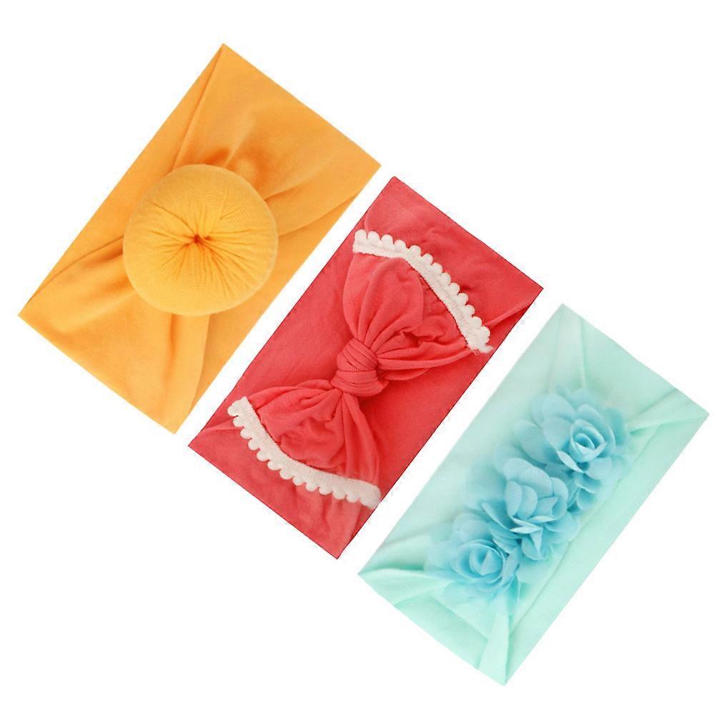 3pcs Elastic Headbands with Doughnut Bowknot & Chiffon Flower – Comfortable & Stylish Hair Accessories