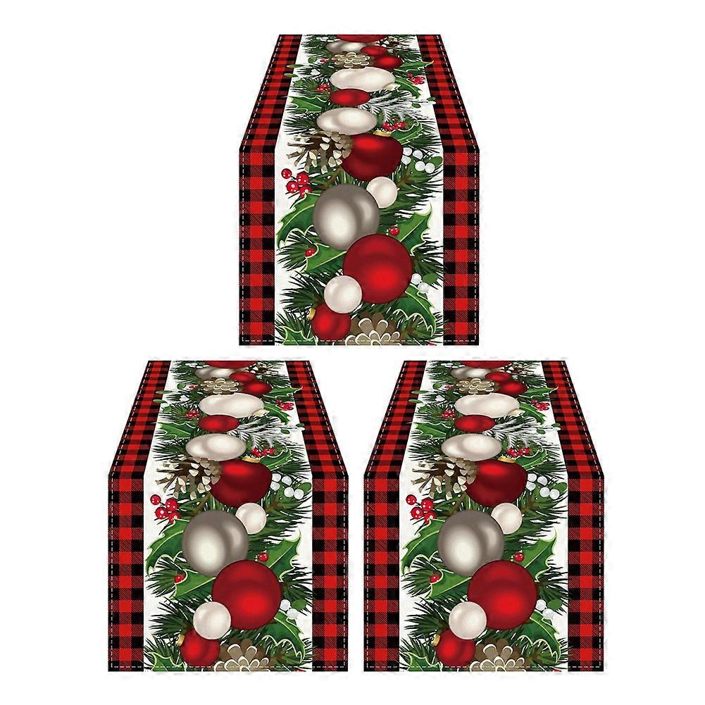 3X Linen Red and Black Check Christmas Table Runner 72 Inches Long Seasonal Winter Christmas Table