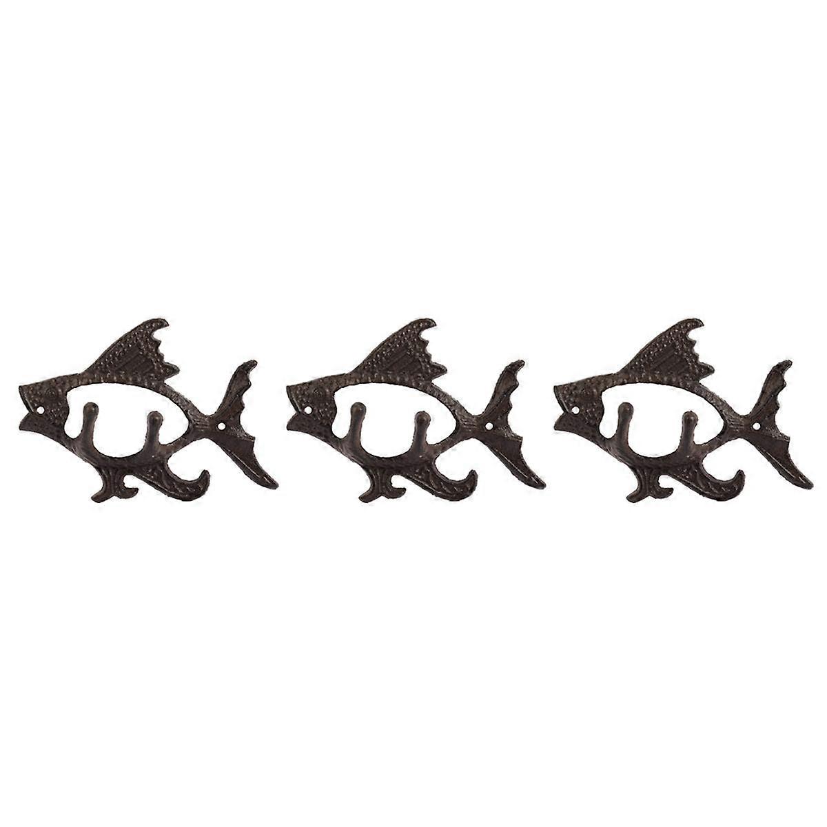 3X Fish with Two Hooks Ocean Series Cast Iron Wall Hook Wall Mount Towel Hanger Hook for Hat, Key