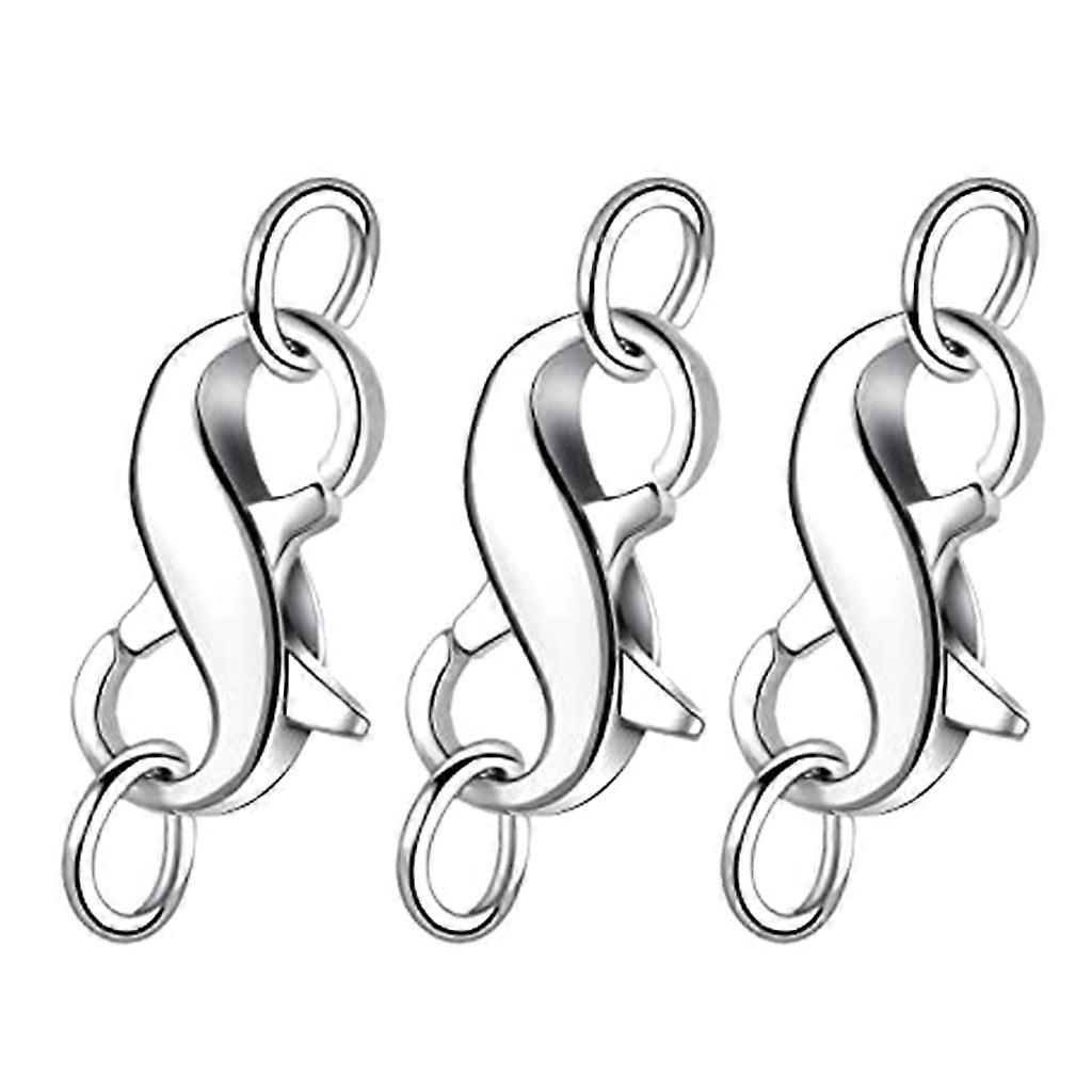 3x Practical Double Opening Lobster Claw Clasps Lock Necklace Bracelet Connector with Jump Rings for DIY Jewelry Crafts Silver
