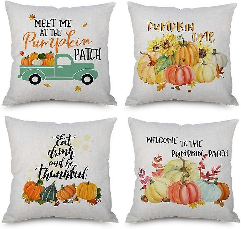 4 Happy Halloween Pillow Covers Fall Decorations Decorative Pumpkin Pillow, 18 x 18 inches