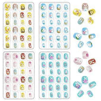4 Sets Easter Fake Nails For Kids Short Full Cover False Nail,Stick On Nails For Children-Style1