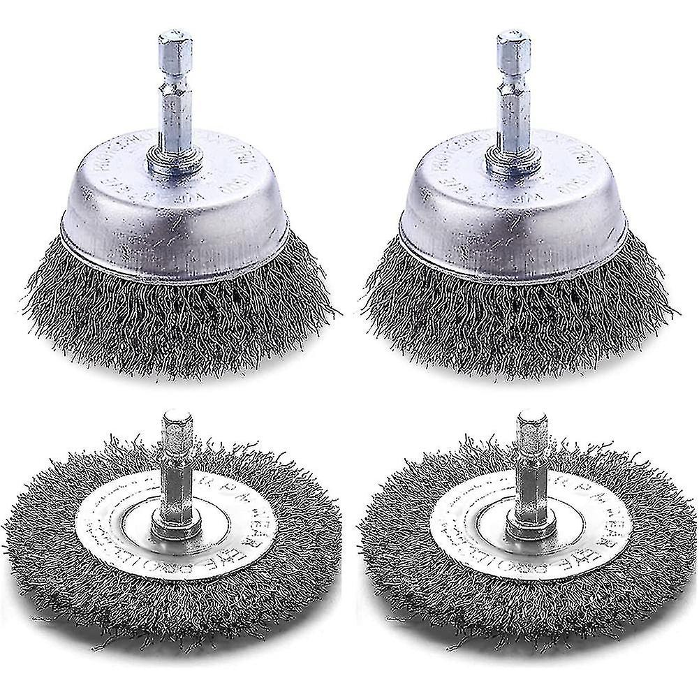 4 Pack Wire Brush For Drill, 3 Inch Driil Wire Brushes,1/4 Inch Hex Wire Cup Brush Set For Cleaning