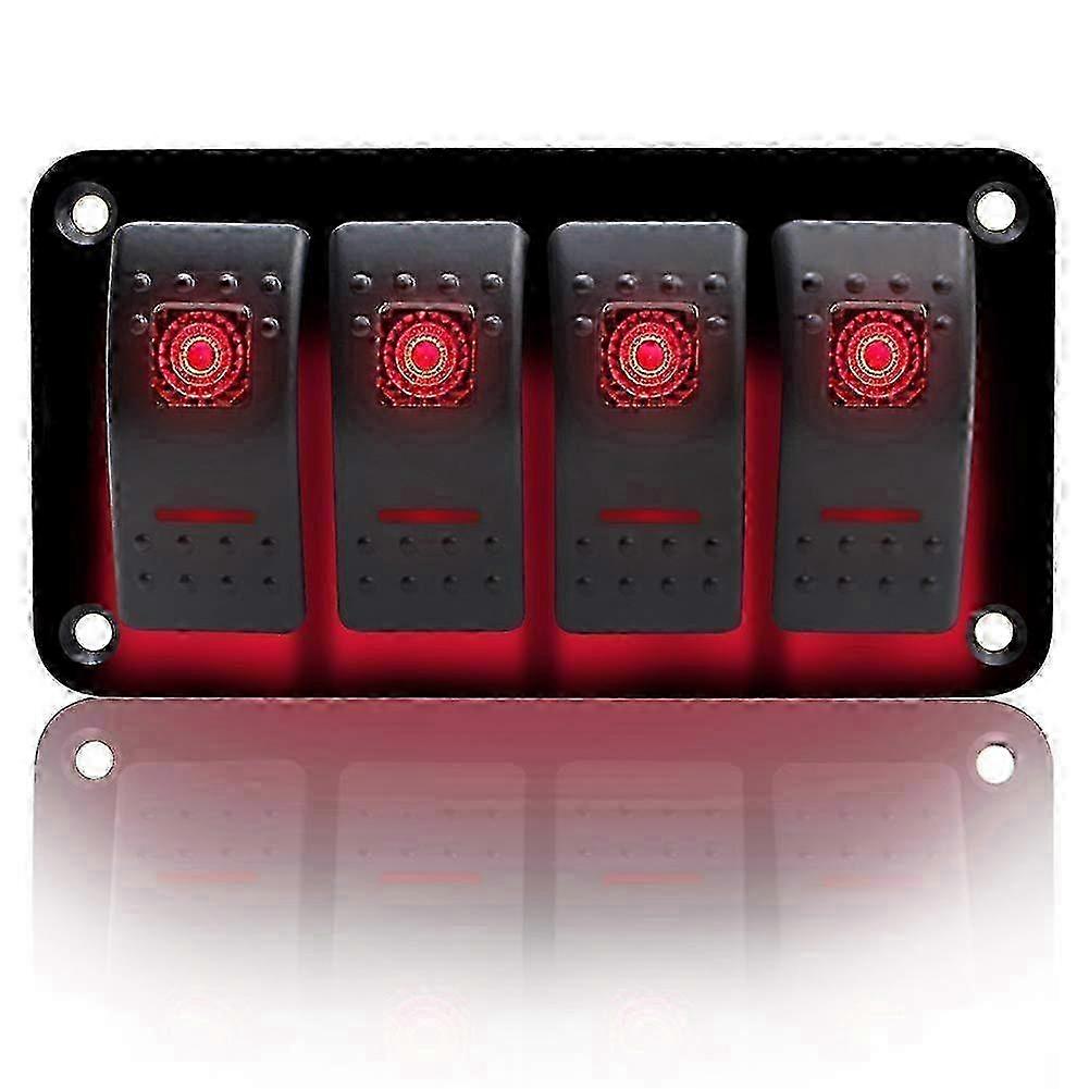 4 Gang Toggle Switch, ON-OFF IP65 Waterproof, 12V/24V LED Rocker Switch Panel for Boat, RV, Car Vehicles