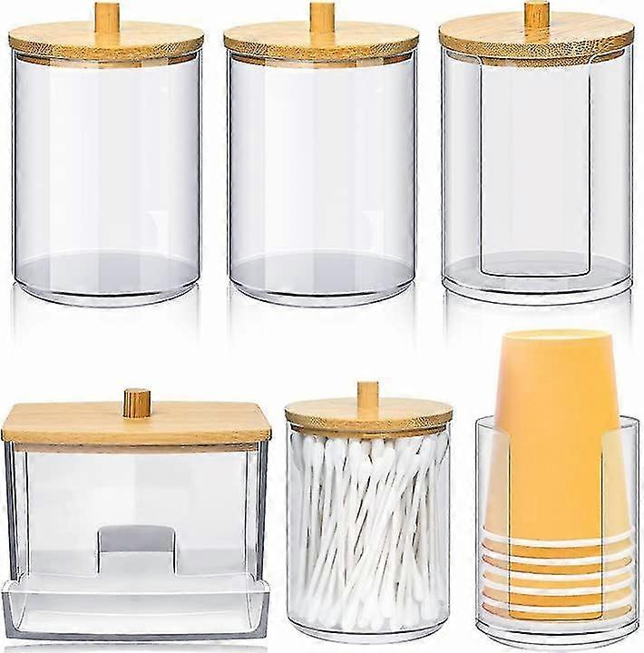 4 Pack Acrylic Qtip Holder Dispenser With Bamboo Lid, Cotton Ball Pad Round Swab Holder For Cotton Pads Cotton Balls Hair Ties Rustic Bathroom Decor A