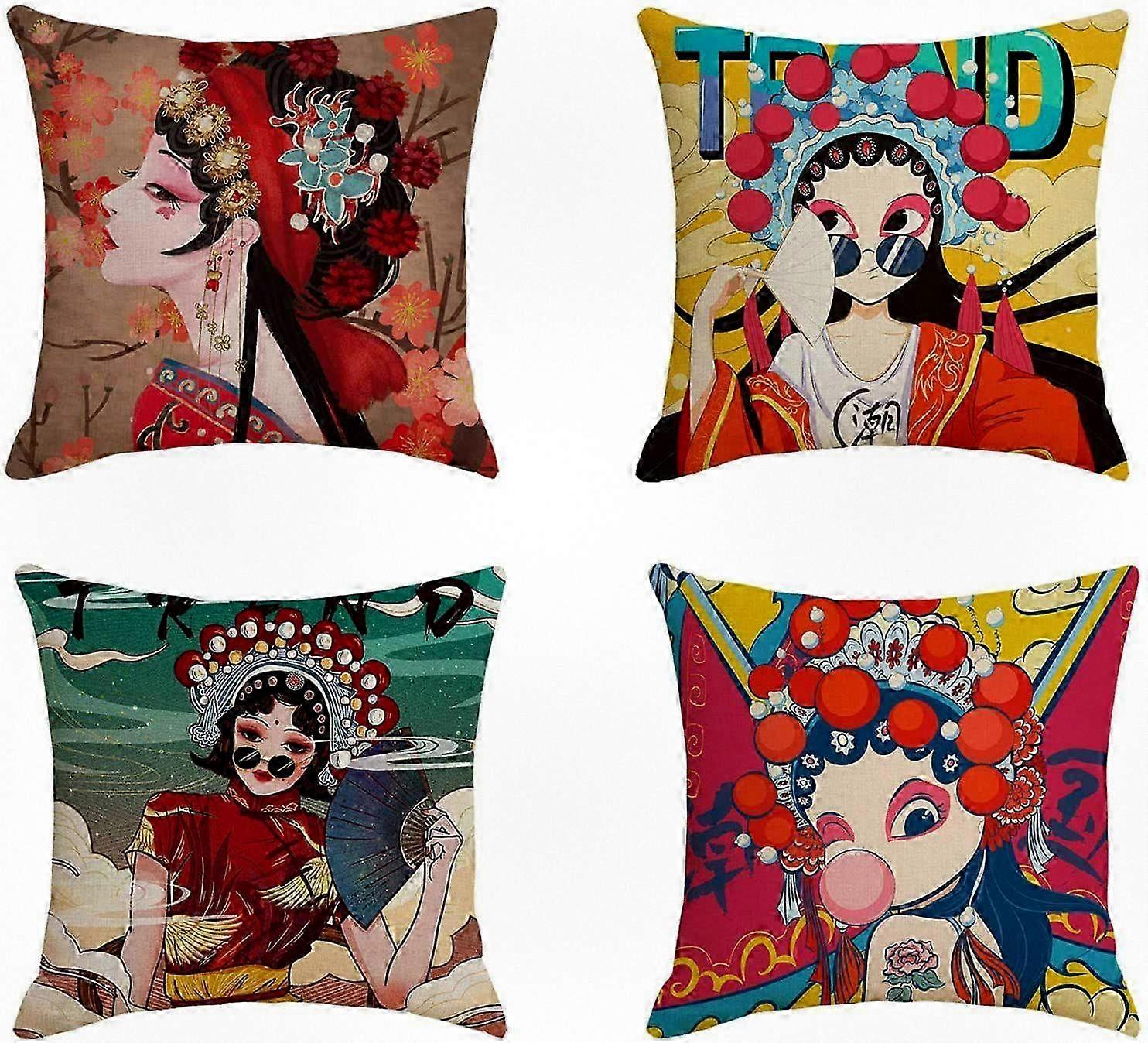 4 Pack Decorative Double-sided Cushion Covers, Waterproof Abstract Art Throw Pillow Covers for Various Brands, Cotton Square Modern Pillow C
