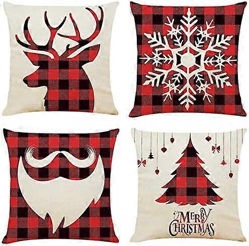 4 Pack Pillowcase Christmas Decoration Sofa Pillow Cover Cotton Linen Pillow Square Cushion Cover