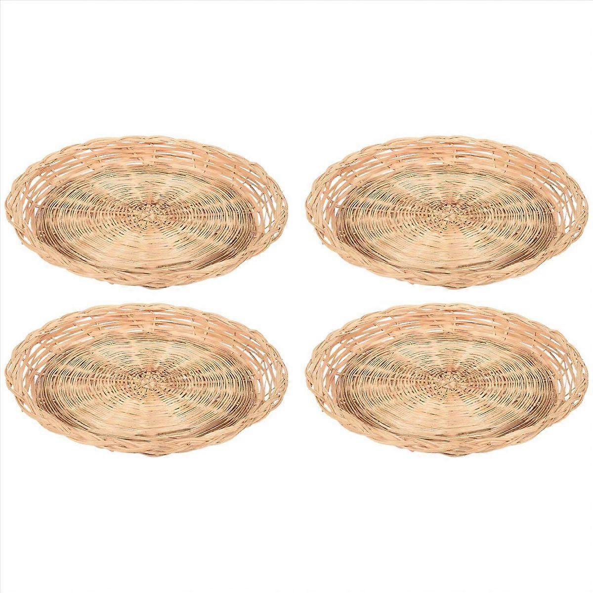 4 Pcs Bamboo Paper Plate Holder-10 Inch Round Woven for Picnic Party