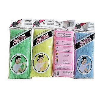 4 Pcs Long Exfoliating Beauty Skin Bath Towels with Nylon Cloth & Yellow+Blue+Green+Pink Colors
