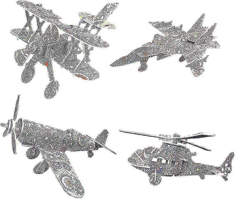 4 Pcs/pack 3d Coloring Puzzle Set 3d Animals/houses/aircrafts Puzzles