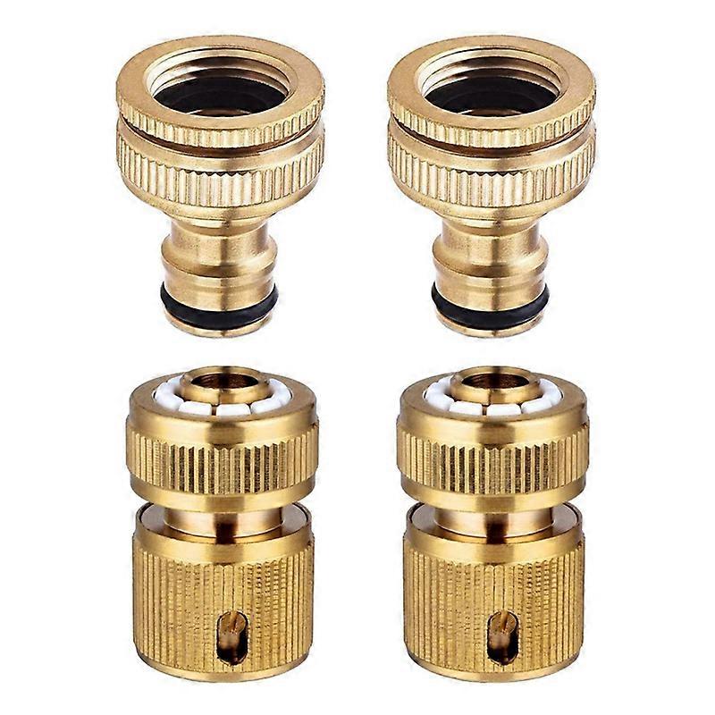 4 Pieces Garden Hose Tap Connector 1/2 Inch and 3/4 Inch Size 2-In-1 and 1/2 Inch Hose Pipe Quick Connector