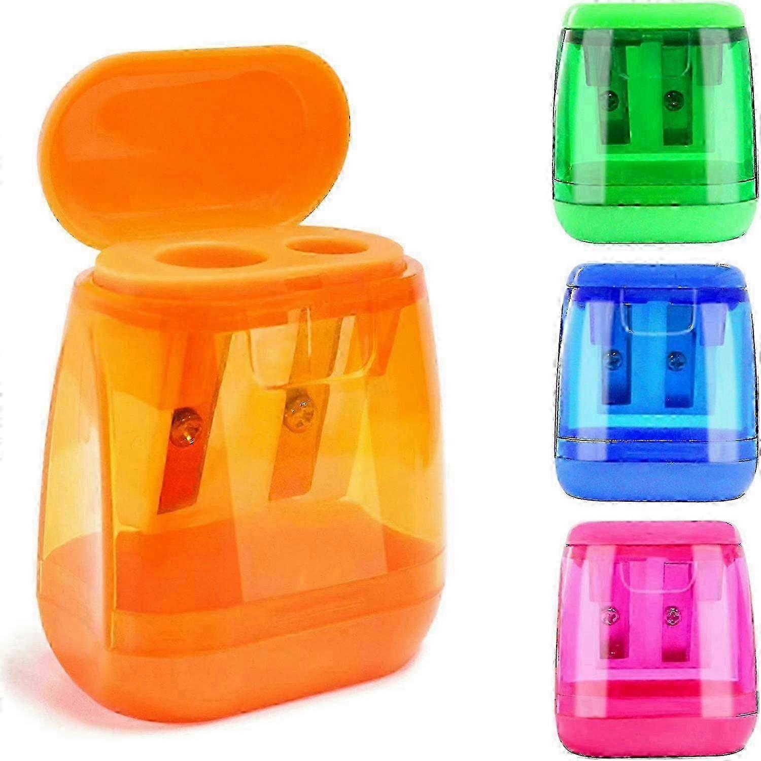 4 Pieces Pencil Sharpener Manual Dual Hole Color Handheld Pencil Sharpener With Cover Portable