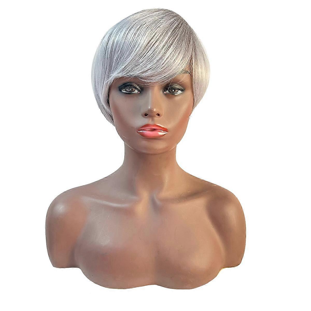 4 Inch Wig Head Covering Gray and White Short Hair Elderly Role-Playing Elegant Fashion Wig Set