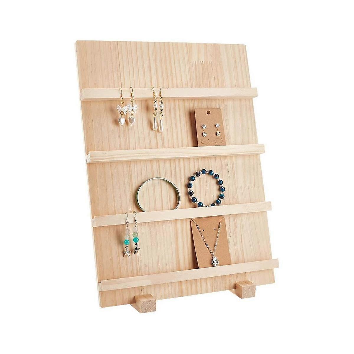 4-Tier Wooden Earring Display Stand,with Slots Rustic Earring Display Card Holder for Showing Exhib