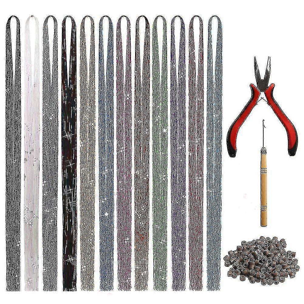 47 Inches H Extens Tinsel With Tool ,12 S 2400 S H Extens Tinsel Kit, Glitter H Extenss