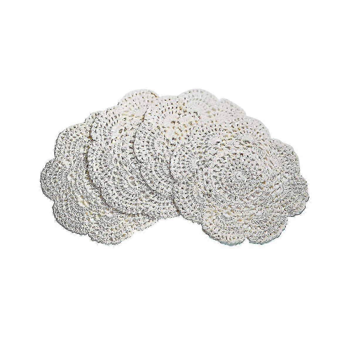 4pcs 8.6 Inch Doilies Crochet Round Lace Doily Handmade Placemats Cotton Crocheted Coasters (beige)