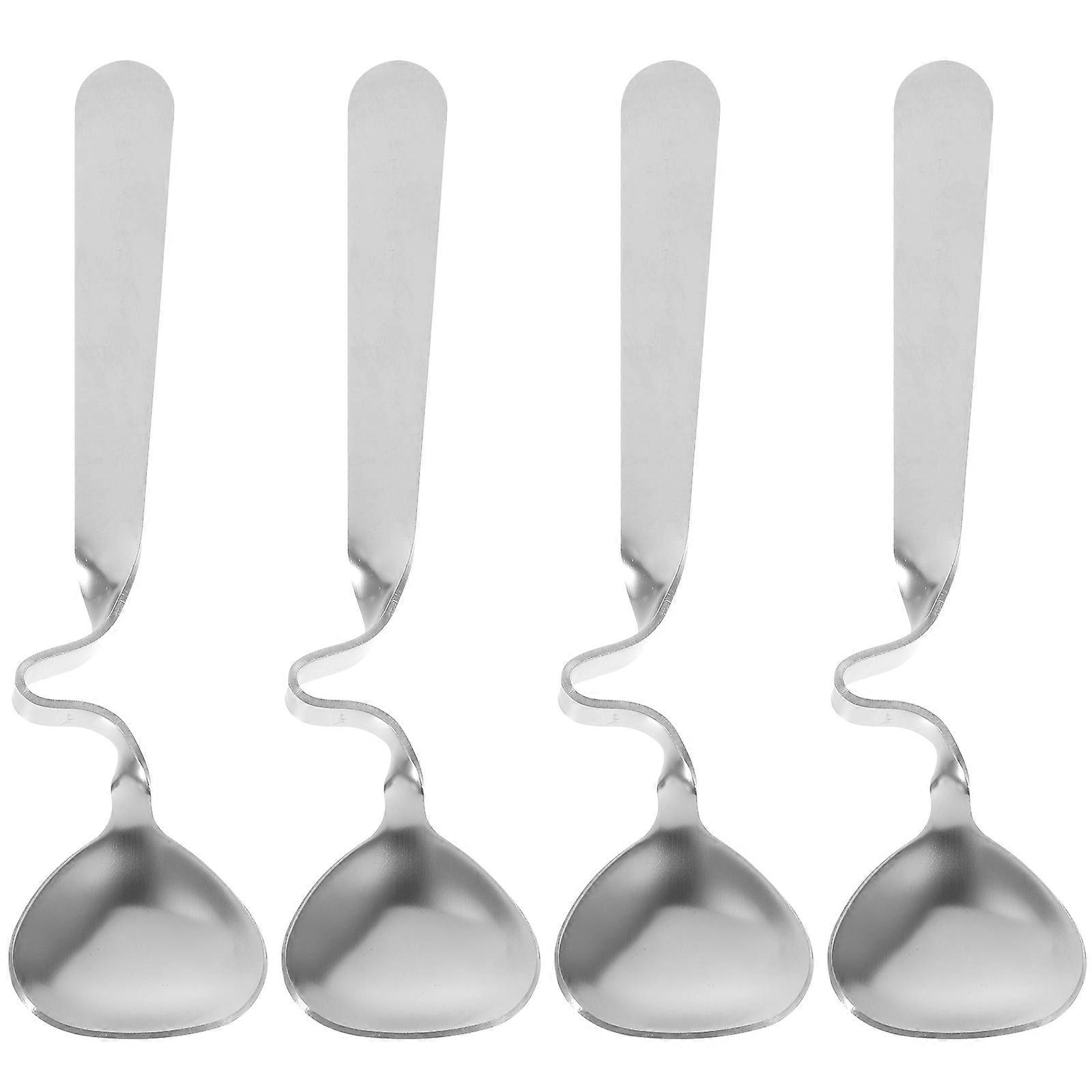 4Pcs Stainless Steel Honey Mixing Spoons Curving Handle Coffee Spoons (Silver)