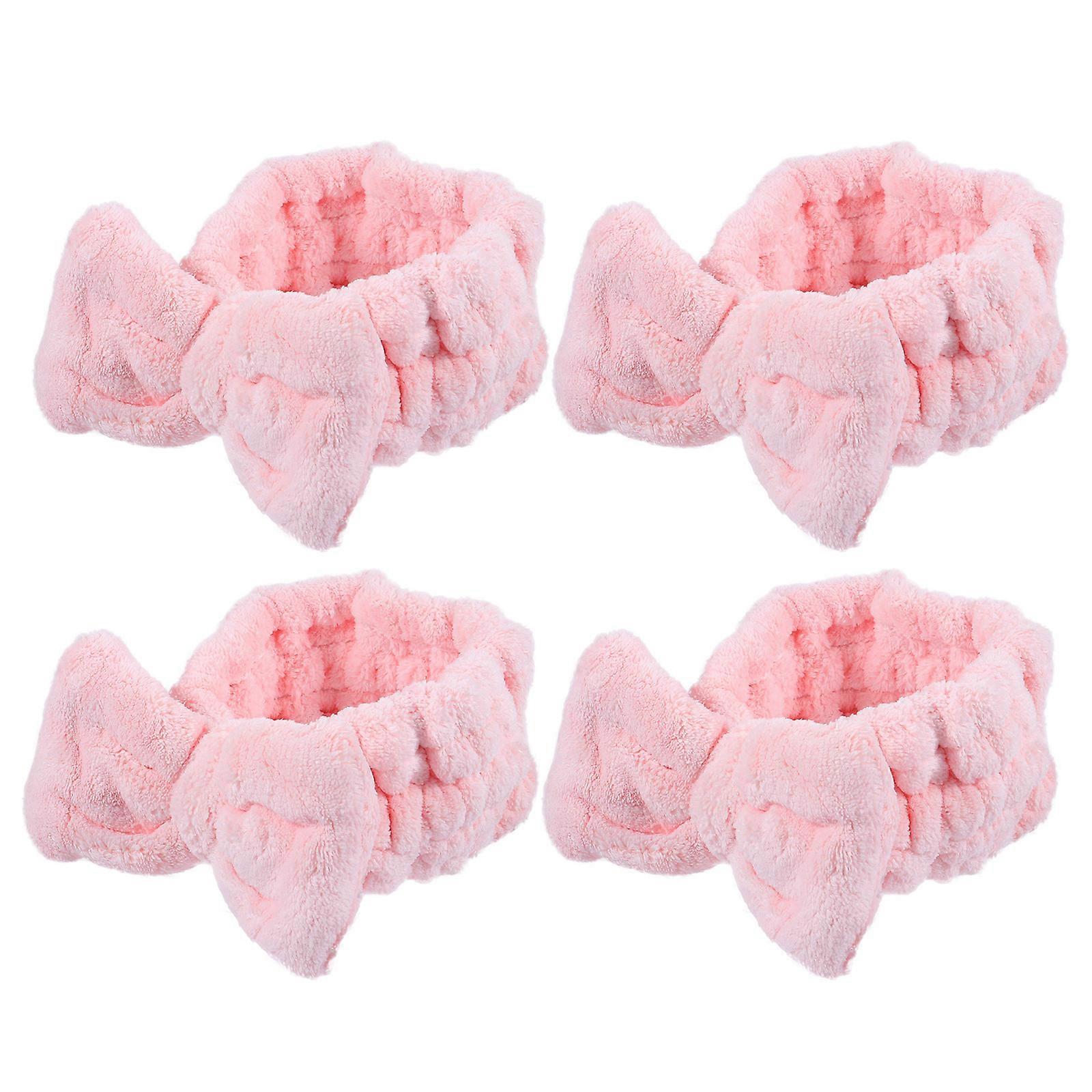 4PCS Coral Fleece Bowknot Elastic Headbands for Makeup, Hair Wrapping, Face Washing, Spa & Skincare Use for Women